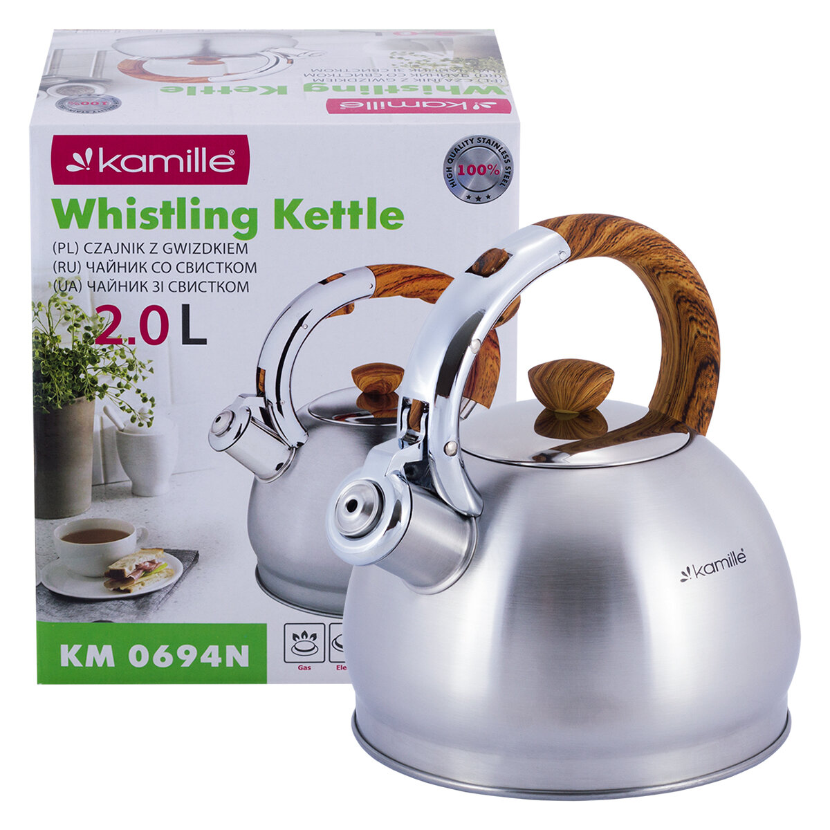 Купить Чайник 2 л. из нержавеющей стали со свистком Kamille KM 0694N (2 л. / серебристый) с доставкой по всей России.