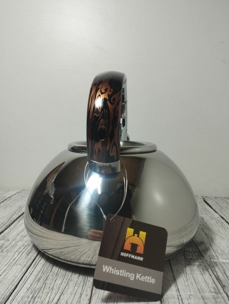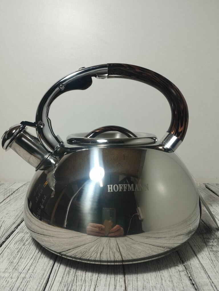 Чайник 3,0л из нержавейки, зеркальный со свистком толстое дно HOFFMANN