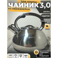 Чайник 3,0л из нержавейки, зеркальный со свистком толстое дно HOFFMANN: сравнение цен, характеристики, фото, актуальное наличие и цены.
