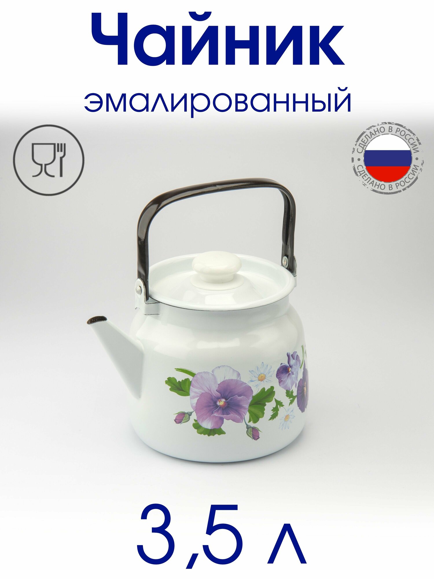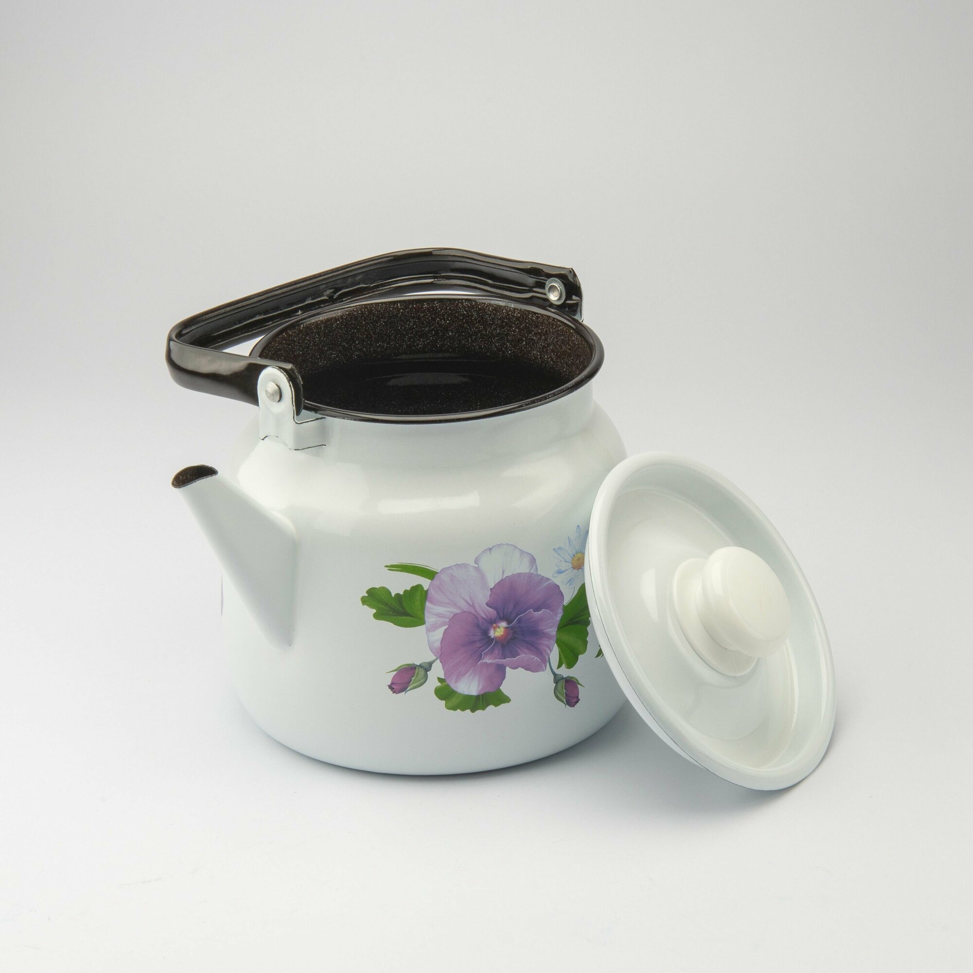 Купить Чайник 3,5 л эмалированный, белый с рисунком «Анютины глазки» с доставкой по всей России. Чайник 3,5 л эмалированный, белый с рисунком «Анютины глазки»: сравнение цен, характеристики, фото, актуальное наличие и цены.