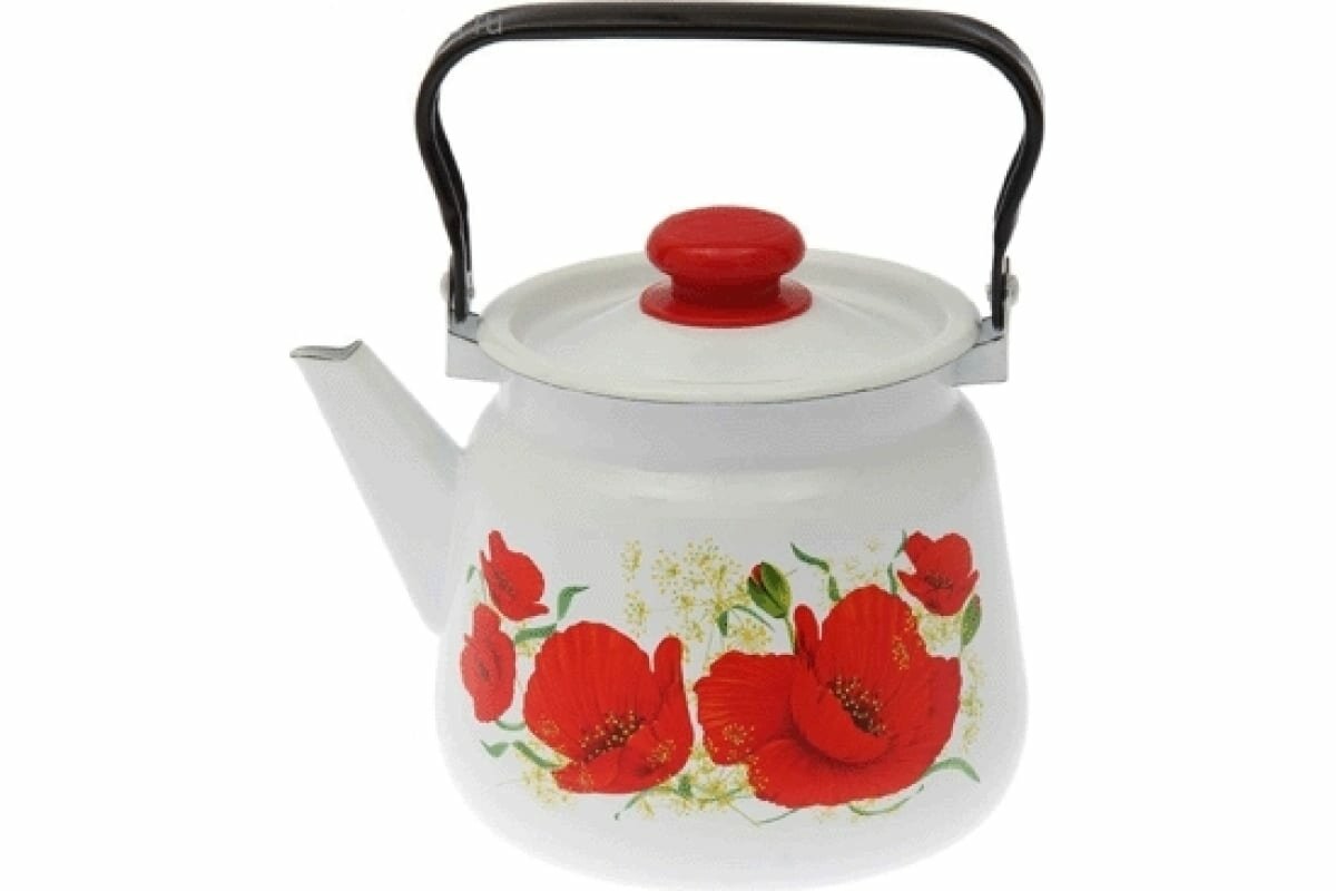 Купить Чайник 3,5л эмаль 2716*67 сфер. Маки белый с петлёй стальэмаль с доставкой по всей России.
