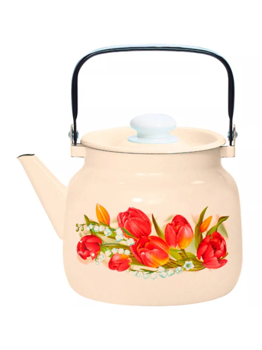 Чайник для плиты Лысьвенские эмали Китайская роза 2710/4п2 с подвижной ручкой из эмалированной стали белый 2.0л / для кипячения воды / кухонная посуда для всех видов плит