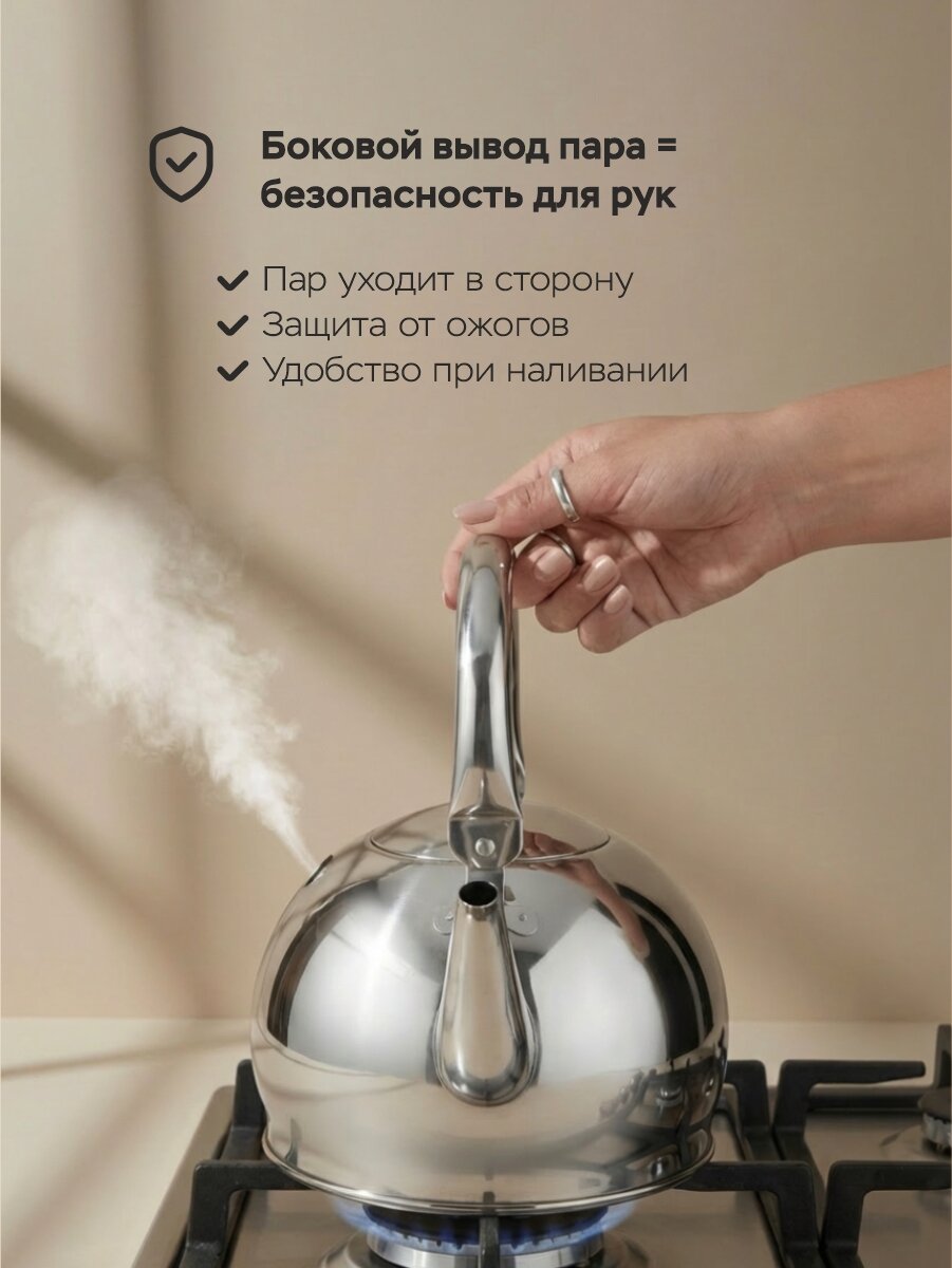 Эргономичная ручка не перегревается, поэтому вы не рискуете обжечься, когда вода закипит. Уникальная форма чайника и удобная крышка позволяют удобно наливать и сливать воду, а также обеспечивают быстрый и равномерный нагрев и кипячение.