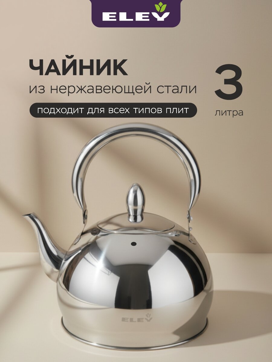 Купить Чайник 3л ELEY из нержавеющей стали для всех типов плит с доставкой по всей России. Чайник 3л ELEY из нержавеющей стали для всех типов плит: сравнение цен, характеристики, фото, актуальное наличие и цены.