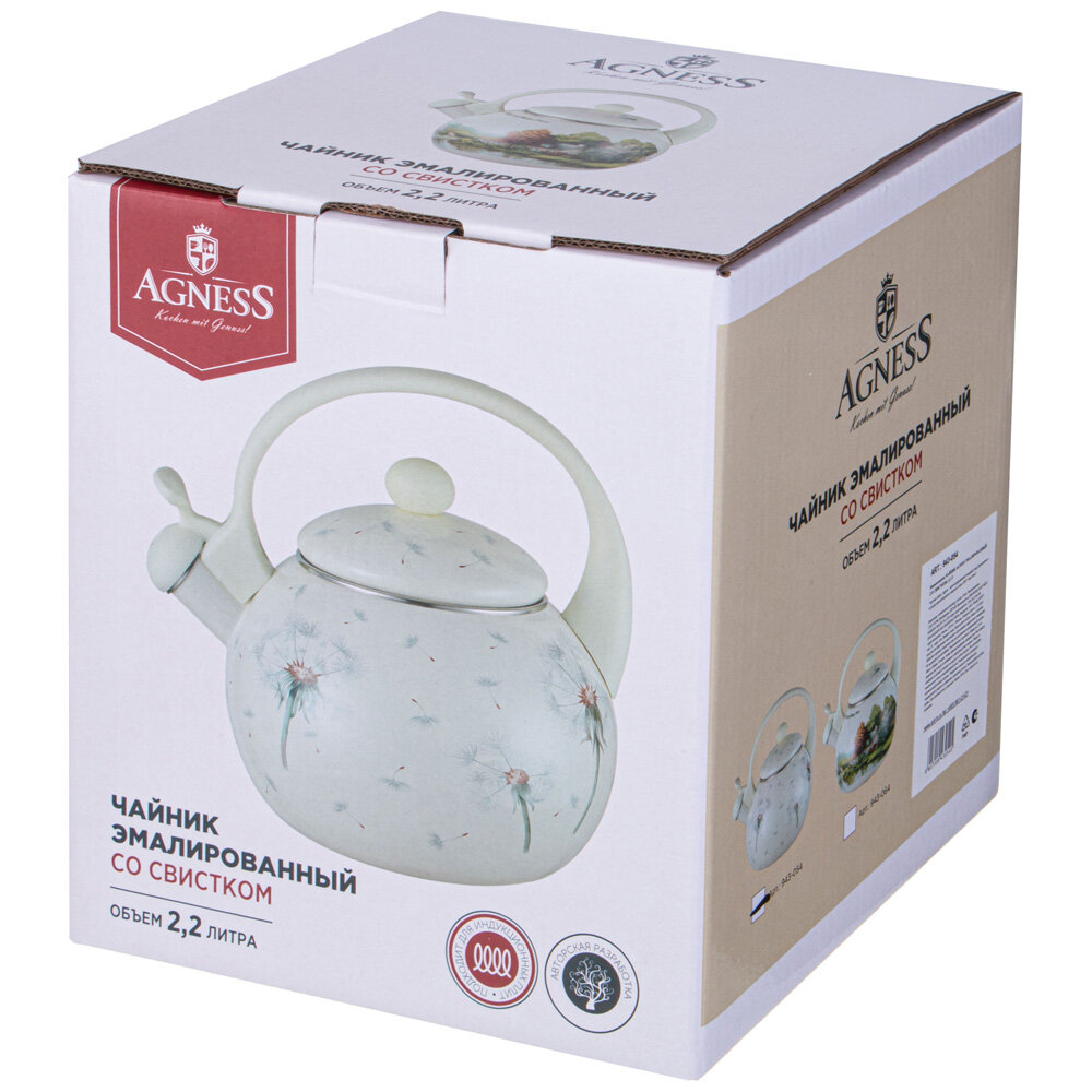 Купить Чайник agness эмалированный со свистком серия dandelion, 2,2 л KSG-943-054 с доставкой по всей России.