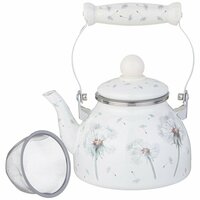 Маленький чайник для плиты со съёмным фильтром выполнен из наиболее гигиеничного материала - эмалированной стали. Его объём составляет 1100 мл, дно диаметром 14 см, общая длина 17 см, высота с поднятой ручкой составляет 21.5 см. Металлический чайник оснащен ситом для заварки, изготовленным из нержавеющей стали, который легко вынимается. Эргономичная ручка чайника также выполнена из нержавеющей стали и имеет керамическую накладку для захвата, а также в конструкции предусмотрен стопор для фиксирования ручки с одной стороны. Крышка стального чайника имеет пластиковую ручку.