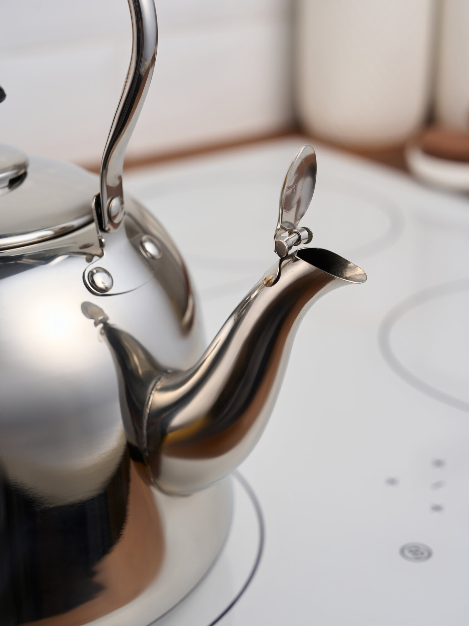 Чайник можно мыть в посудомоечной машине, а его дно взаимодействует с индукционной плитой.