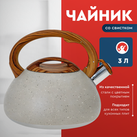 Купить Чайник Alpenkok AK-522, 3 литра, нержавеющая сталь, свисток, для всех типов плит, бежевый гранит с доставкой по всей России.