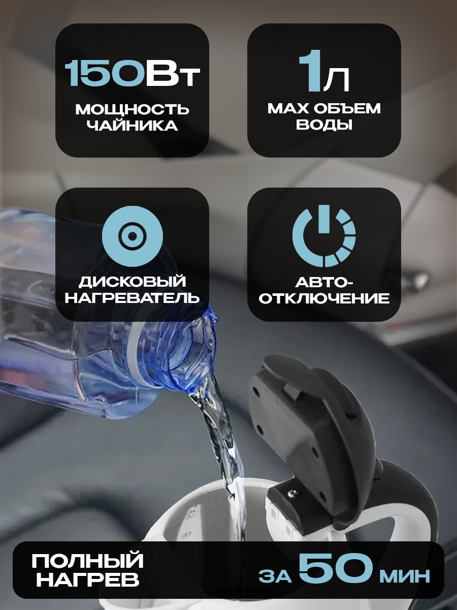 Автомобильный чайник AT, от прикуривателя, металл, пластик, 1 л, 12 В, 150 Вт, автоотключение: сравнение цен, характеристики, фото, актуальное наличие и цены.