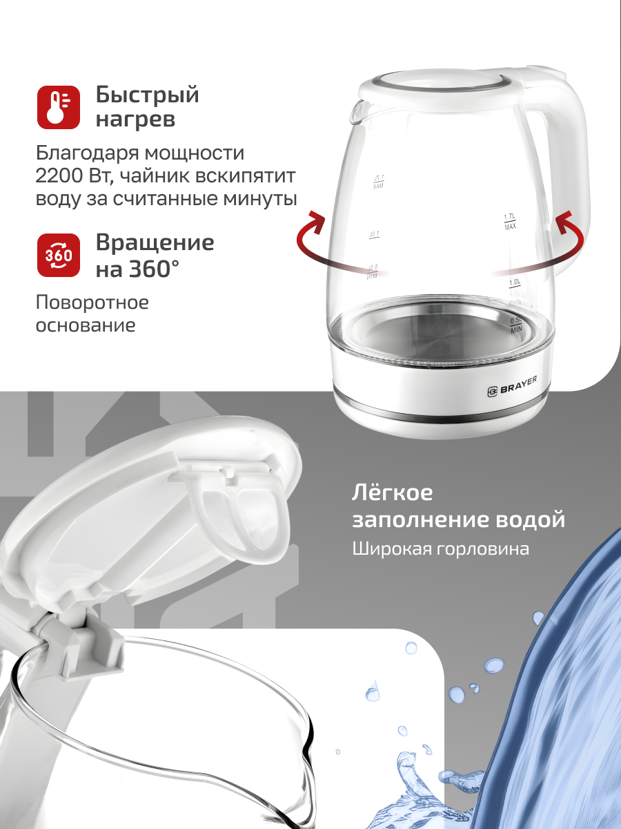 Купить Чайник электрический Brayer BR1030WH с доставкой по всей России.