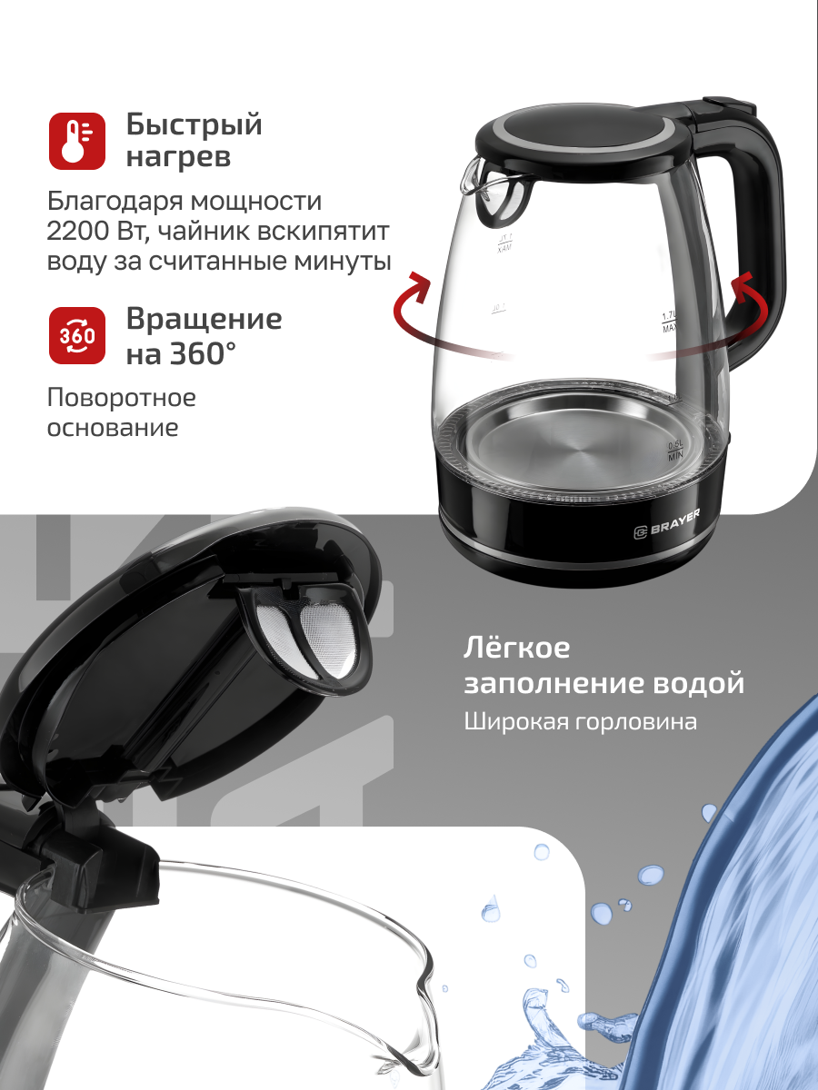 | Безопасность | блокировка включения без воды, отключение при снятии с подставки |