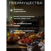 Изделие пригодно для использования на газовых и электрических, в том числе стеклокерамических, галогеновых и индукционных плитах.