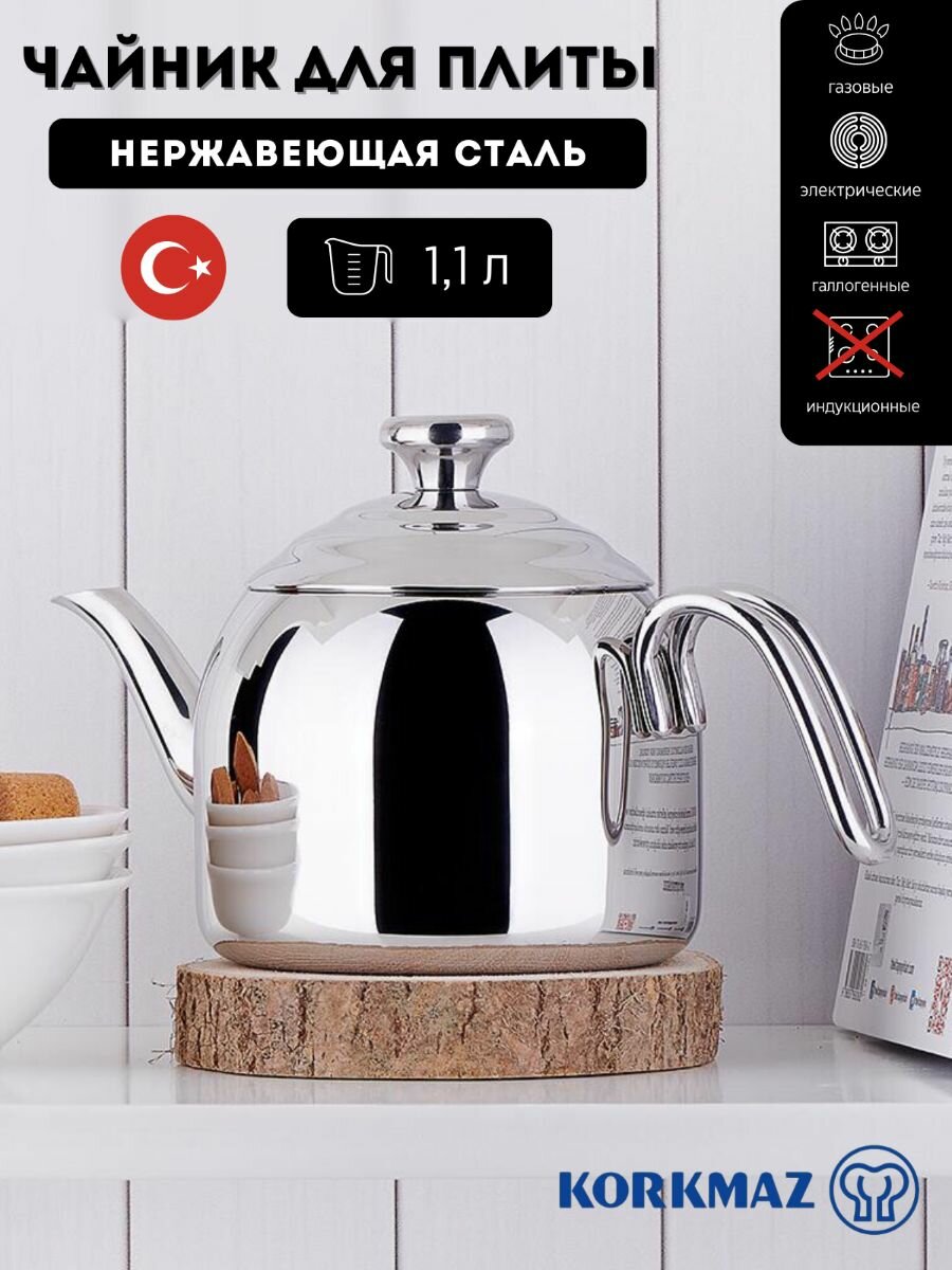 Купить Чайник для плиты 1,1 л Korkmaz Droppa из нержавеющей стали, без свистка с доставкой по всей России. Чайник для плиты 1,1 л Korkmaz Droppa из нержавеющей стали, без свистка: сравнение цен, характеристики, фото, актуальное наличие и цены.