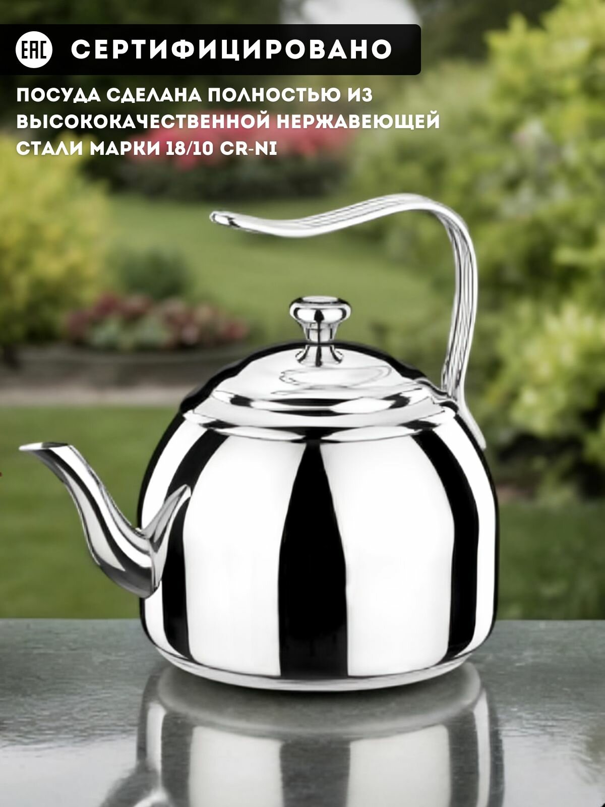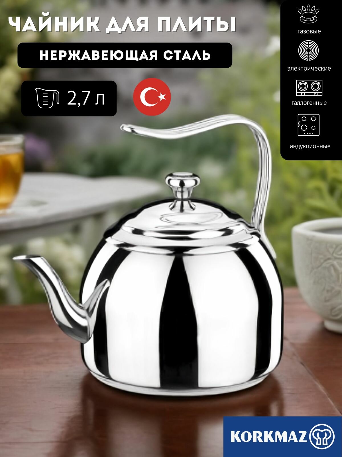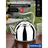 Купить Чайник для плиты 2,7 л Korkmaz Droppa из нержавеющей стали, без свистка, для всех видов плит с доставкой по всей России.