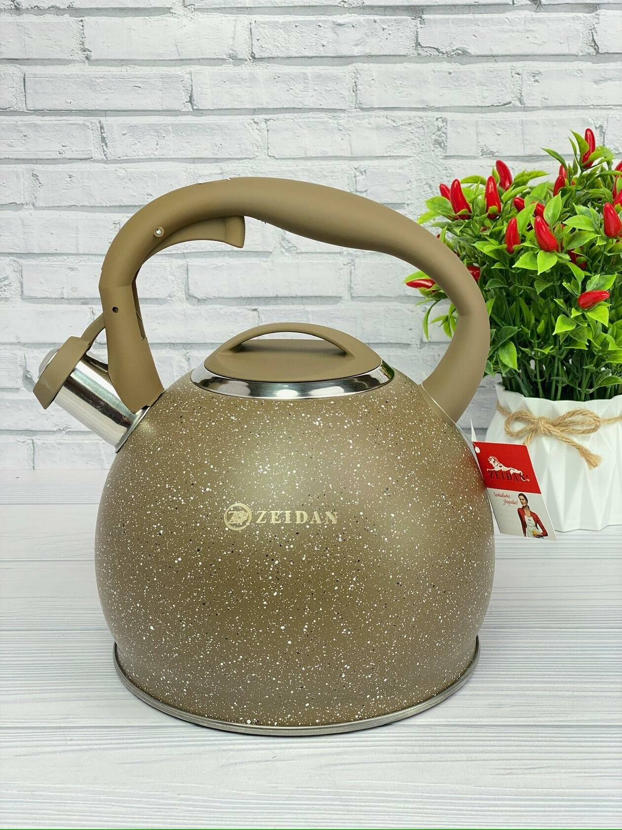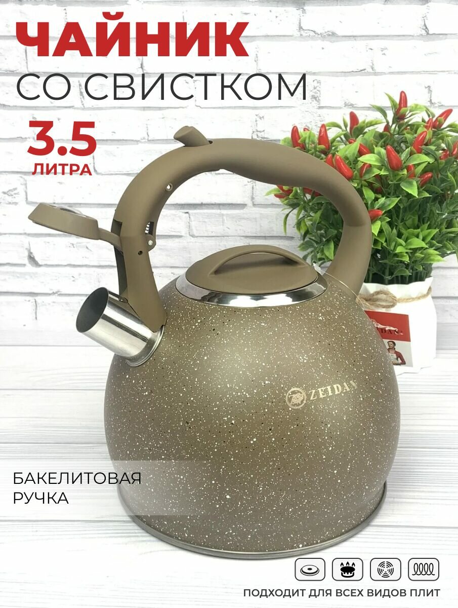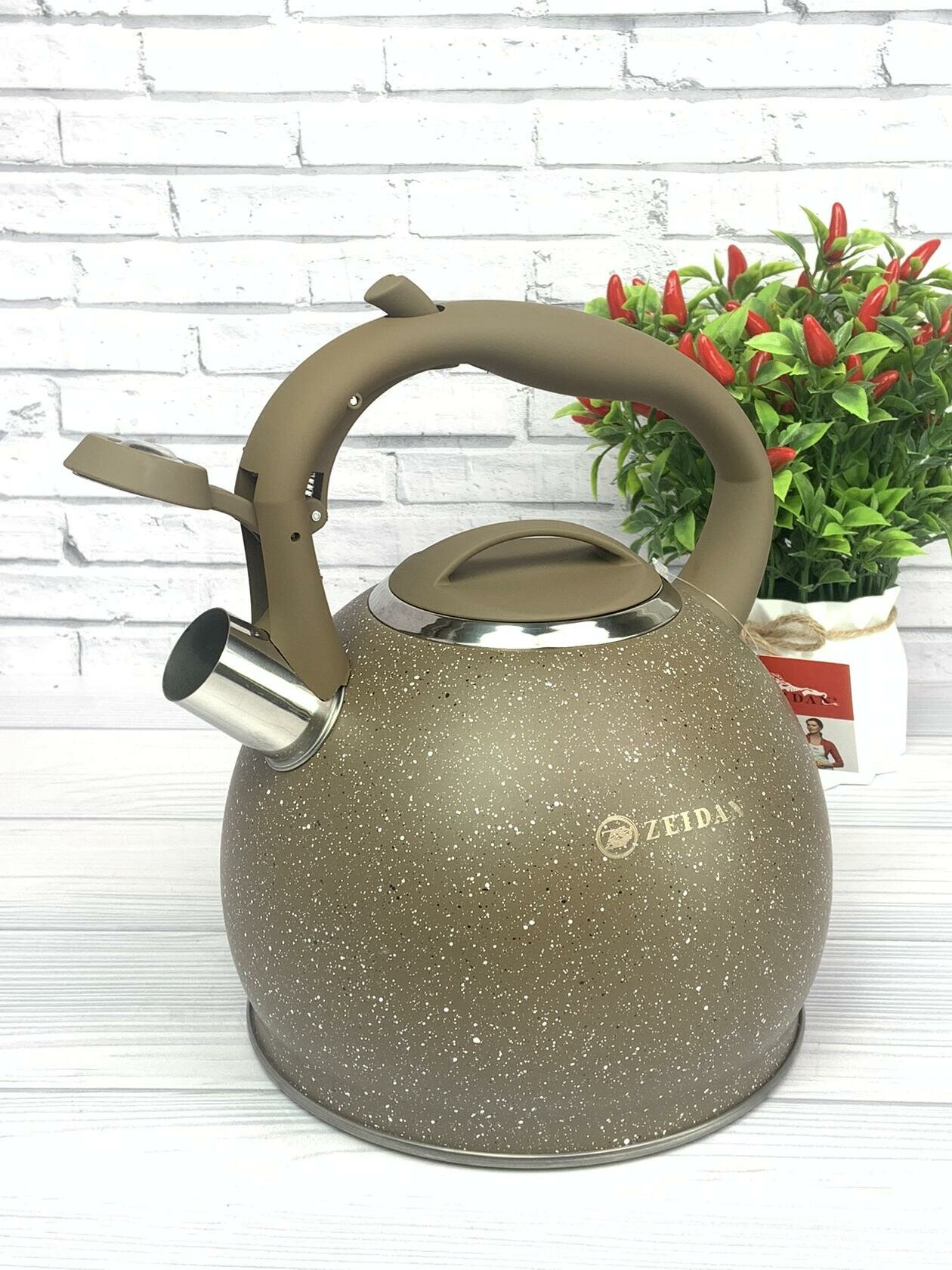 Чайник для плиты 3 литра из нержавеющей стали ZEIDAN для газовой, электрической и индукционной плиты. Чайник со свистком из нержавеющей стали 3 литра - идеальное решение для вас. Чайник для плиты имеет бакелитовую ручку с прорезиненным покрытием с рычагом для открывания носика. Эргономичная комбинированная фиксированная ручка с покрытием "soft-touch".