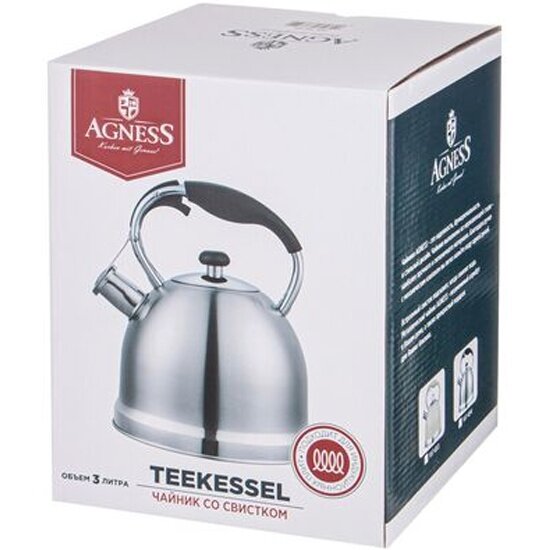| Особенности | индукционное дно, со свистком, термоизолированная ручка, фильтр в носике |