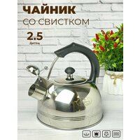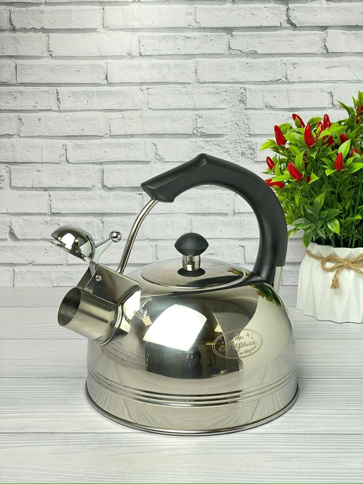 Купить Чайник для плиты нержавеющий со свистком 2,5 литра Мерали с доставкой по всей России.