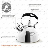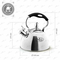 Чайник со свистком из нержавеющей стали 2,5 литра – идеальное решение для вас. Чайник для плиты имеет бакелитовую поворотную ручку с прорезиненным покрытием. Эргономичная комбинированная подвижная ручка с покрытием soft-touch обеспечивает удобство использования.