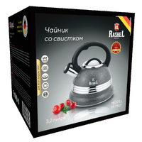 Чайник для кипячения воды Рашел со свистком объемом 3.2 л выполнен из высококачественной нержавеющей стали 18/10(AISI 304), изделие поставляется в подарочной упаковке. Нужна безопасная, качественная и красивая посуда для кухни? Благодаря свойствам материала посуда устойчива к коррозии, не вызывает аллергии, не вступает во взаимодействие с жидкостью, не искажает вкус и запах, благодаря чему вы всегда получите натуральный, насыщенный вкус и аромат напитков. Идеально гладкая поверхность легко очищается от загрязнений, исключает размножение бактерий! Удобная фурнитура из термостойкого материала позволяет безопасно пользоваться чайником.