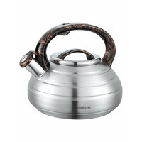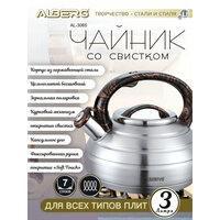 Купить Чайник для плиты со свистком ALBERG AL-3065 3 литра, свисток, нержавеющая сталь 0.6мм, зеркальная полировка, ручка Soft Touch, 7-ми слойное дно, индукция с доставкой по всей России.