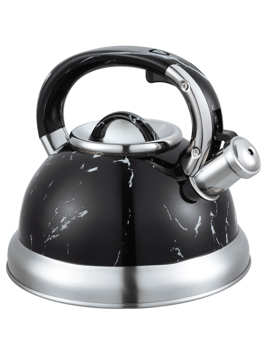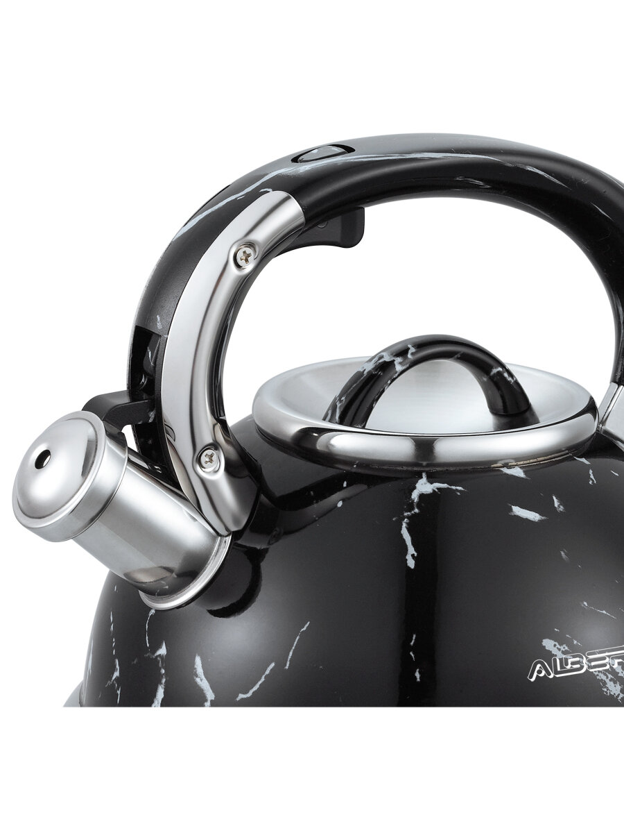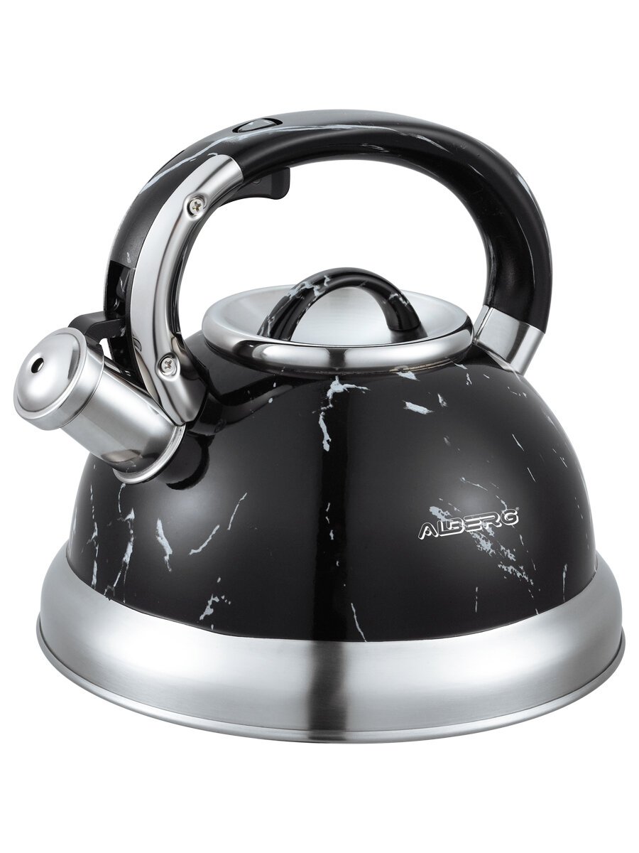 Купить Чайник для плиты со свистком ALBERG AL-3070 3 литра, свисток, из нержавеющей стали 0.5мм, внешнее термостойкое покрытие «Черный мрамор», индукция с доставкой по всей России.
