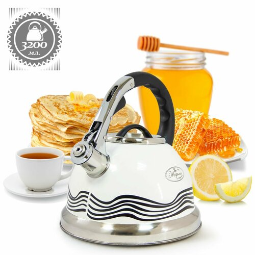 Чайник для плиты со свистком Мерали из нержавеющей стали с терморисунком для газовых электрических и индукционных плит 3,2 литра: сравнение цен, характеристики, фото, актуальное наличие и цены.