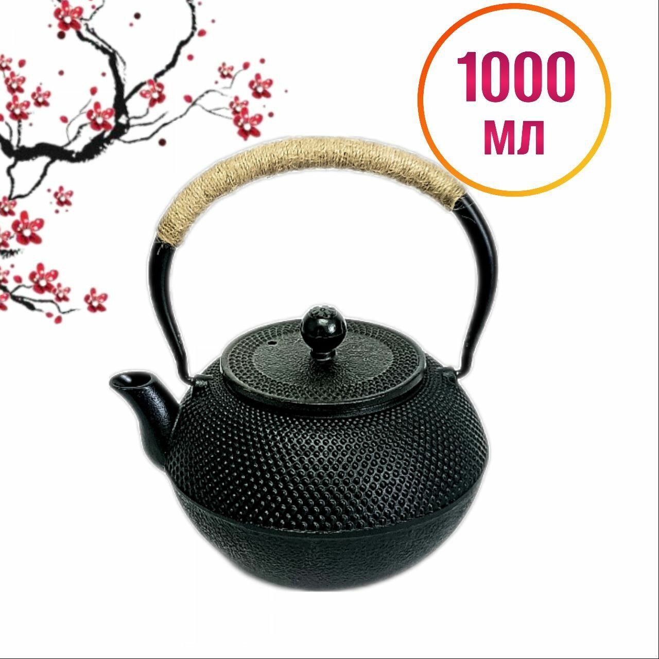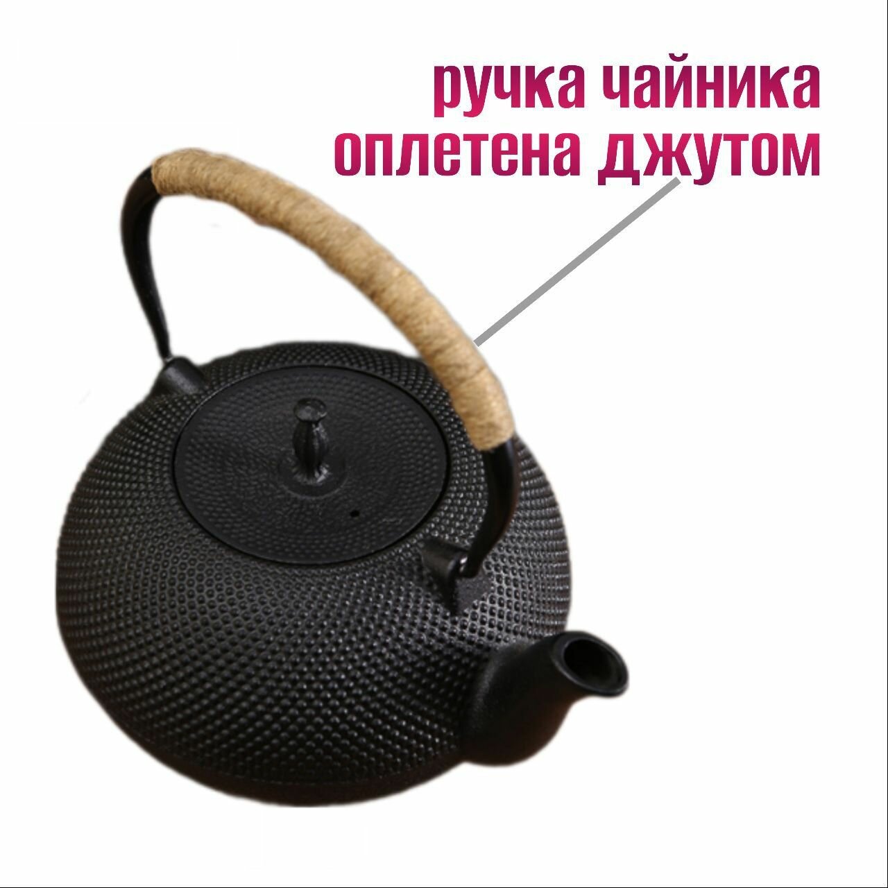 Толщина стенок отлично подходит для заваривание темных чаев. Ручка заварочного чайника из чугуна оплетена джутовой веревкой, для избежания ожогов.