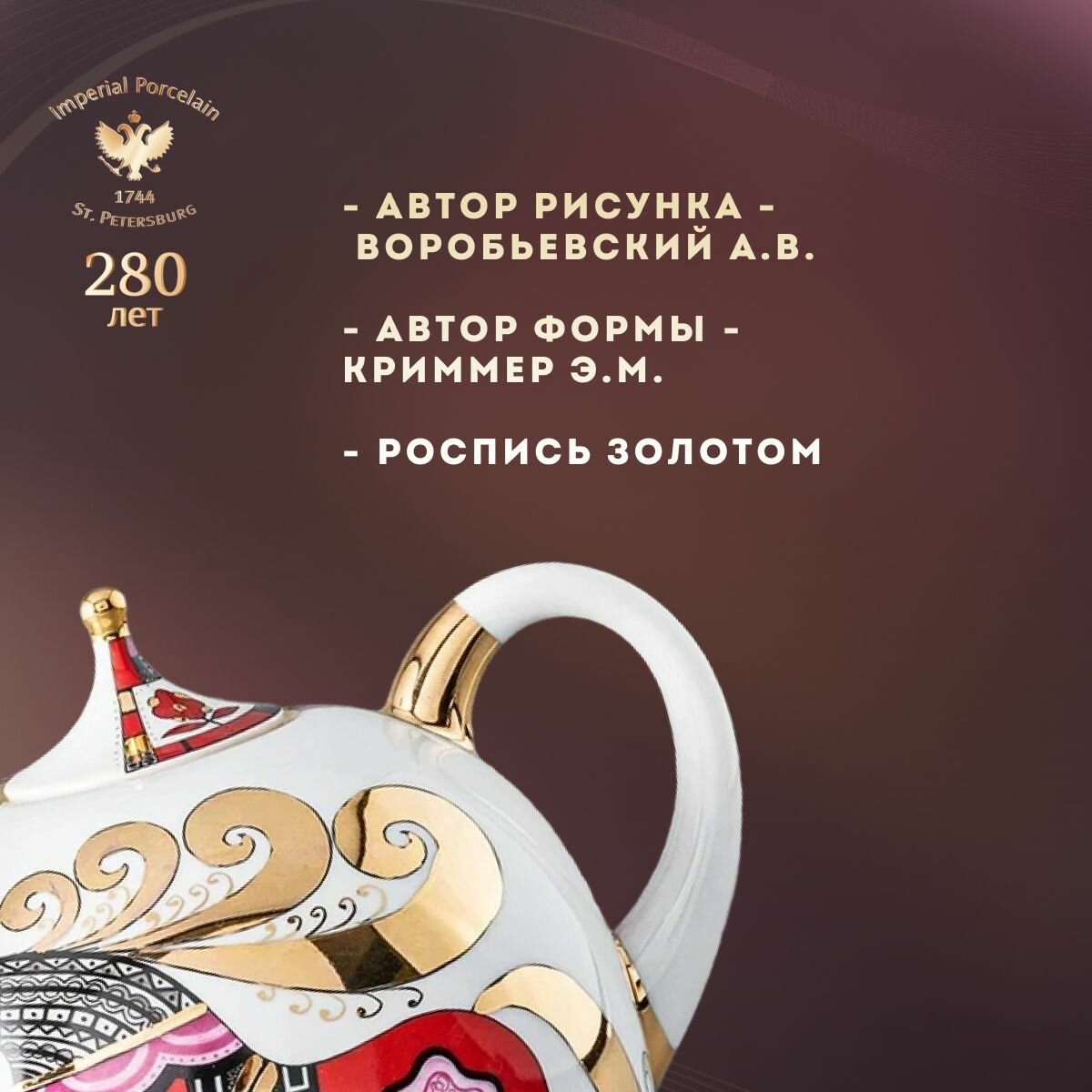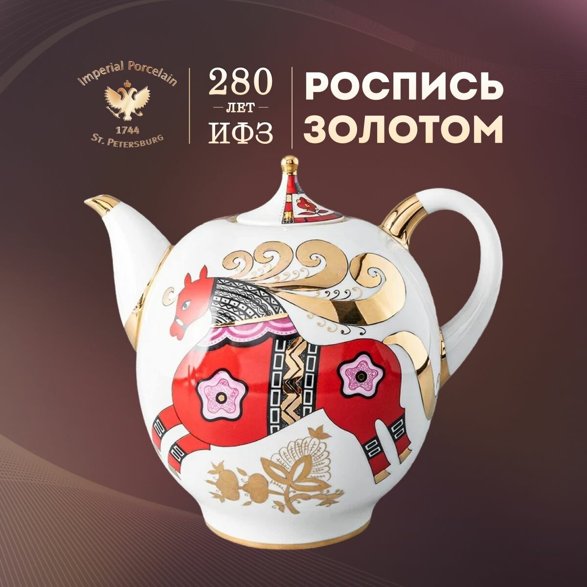 Чайник доливной рис. Красный конь изготовлен на Императорском фарфоровом заводе из твердого фарфора с элементами ручной росписи. Автор рисунка - Воробьевский А. В. Объем изделия - 2450 мл.