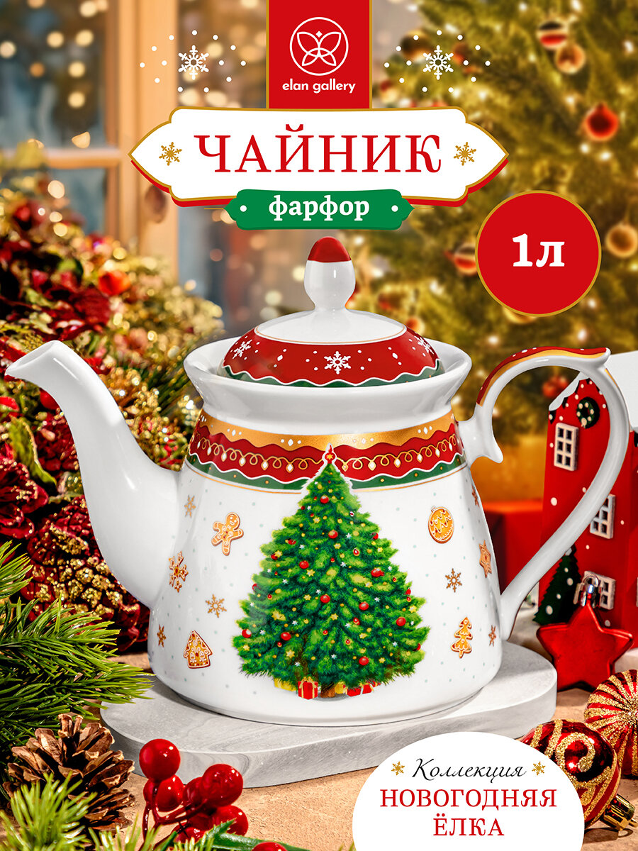 Чайник Elan Gallery «Новогодняя елка» красный узор, 23*13*17 см 1 л (420710): сравнение цен, характеристики, фото, актуальное наличие и цены.