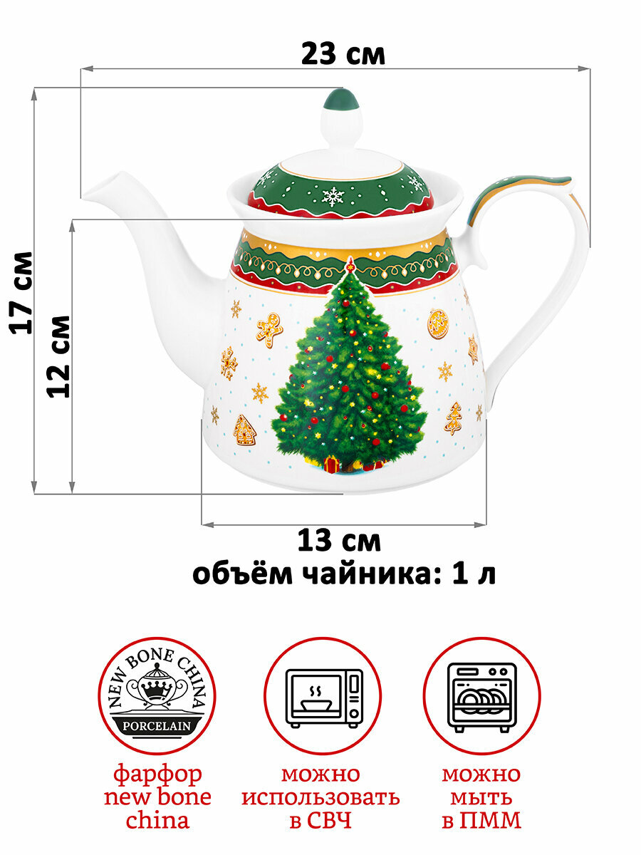 Чайник Elan Gallery «Новогодняя елка» зеленый узор, 23*13*17 см 1 л (420711): сравнение цен, характеристики, фото, актуальное наличие и цены.