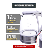 Купить Чайник электрический ZIMBER , 1,7 л, с подсветкой, стекло, пластик, 2200 Вт с доставкой по всей России.