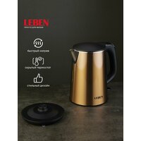 Купить Чайник электрический 1,8 л LEBEN, 1800 Вт, металл, тройные стенки, бесшовная колба с доставкой по всей России. Чайник электрический 1,8 л LEBEN, 1800 Вт, металл, тройные стенки, бесшовная колба: сравнение цен, характеристики, фото, актуальное наличие и цены.