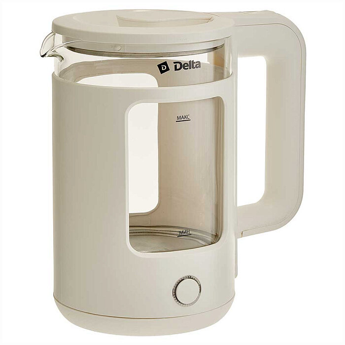 Купить Чайник электрический 1500 Вт, 1,5 л DELTA DL-1112 белый, из термостойкого стекла с доставкой по всей России.