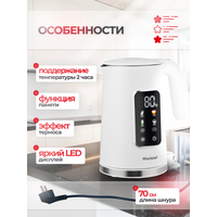 Чайник электрический белый Hietzel K-01 WH, 2200 ВТ, 1,7 л, сенсорный, эффект термоса, с выбором температуры: сравнение цен, характеристики, фото, актуальное наличие и цены.