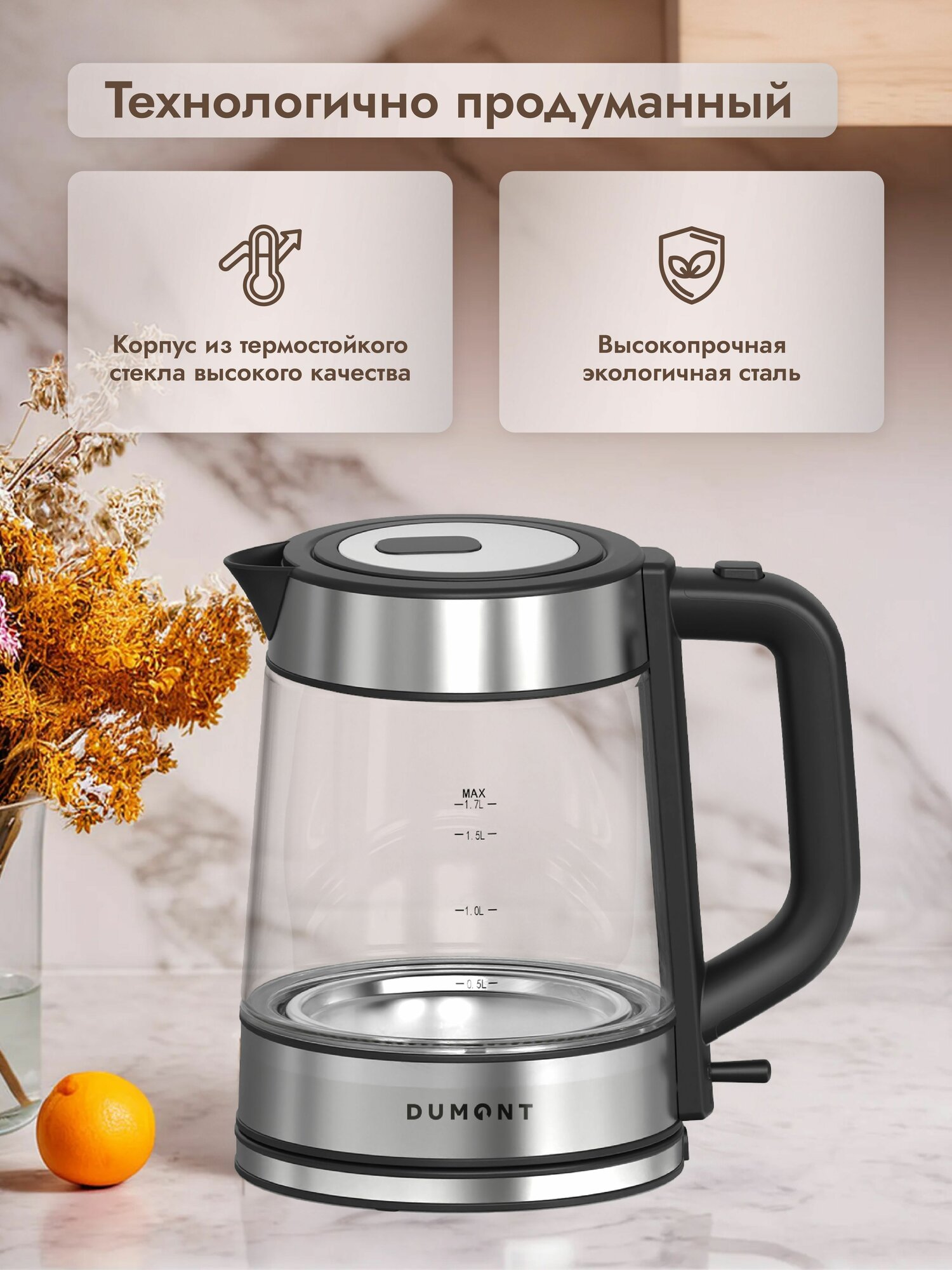 Чайник электрический Dumont DMEK-5004 стеклянный, защита от перегрева, 1,7 л.: сравнение цен, характеристики, фото, актуальное наличие и цены.