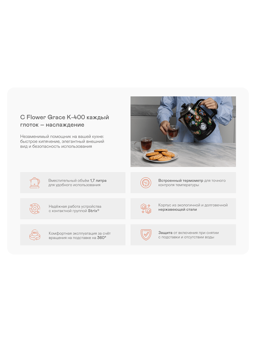 Купить Чайник электрический GARLYN Flower Grace K-400 Гарлин, 1.7 л с доставкой по всей России. Чайник электрический GARLYN Flower Grace K-400 Гарлин, 1.7 л: сравнение цен, характеристики, фото, актуальное наличие и цены.