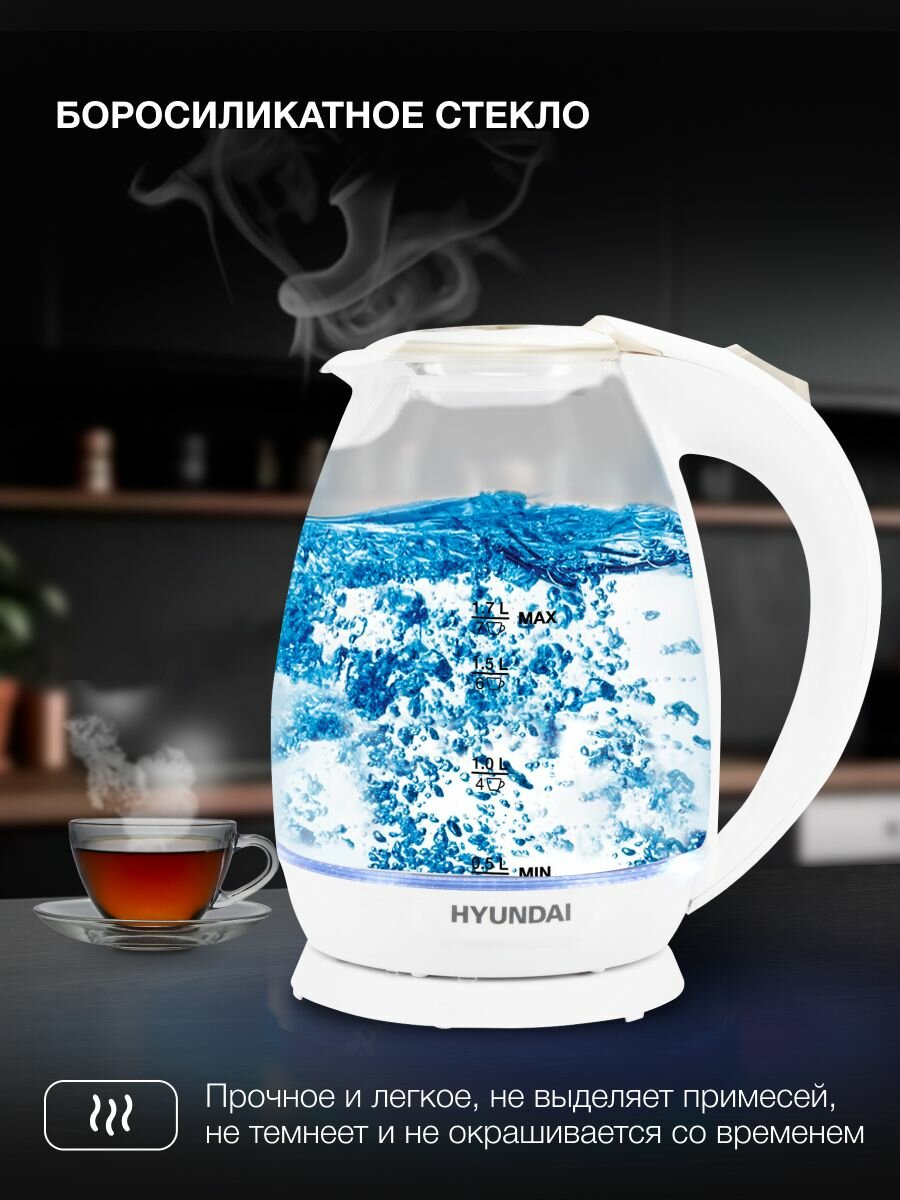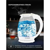 Купить Чайник электрический Hyundai HYK-G2409 белый/серебристый, стекло с доставкой по всей России. Чайник электрический Hyundai HYK-G2409 белый/серебристый, стекло: сравнение цен, характеристики, фото, актуальное наличие и цены.