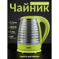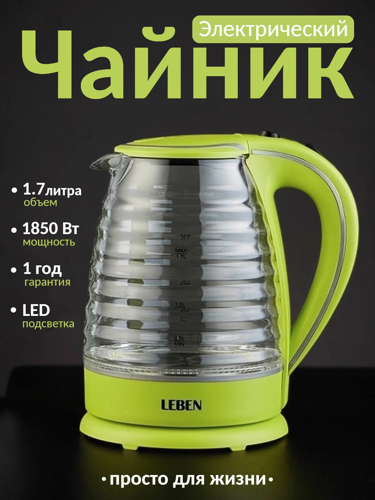 Чайник электрический LEBEN 1,7 л, 1850 Вт, скрытый нагревательный элемент, стекло, рифлёное стекло: сравнение цен, характеристики, фото, актуальное наличие и цены.