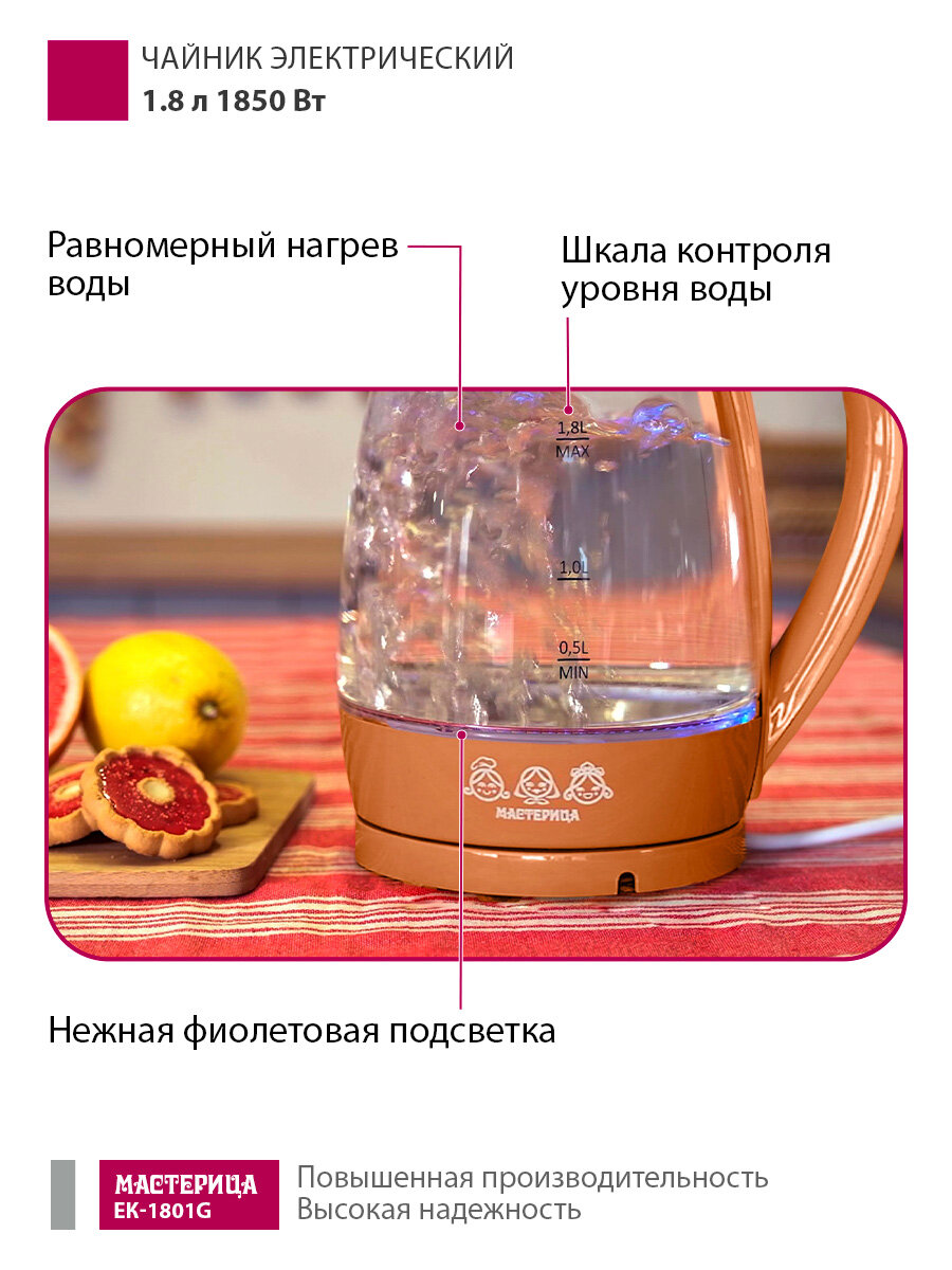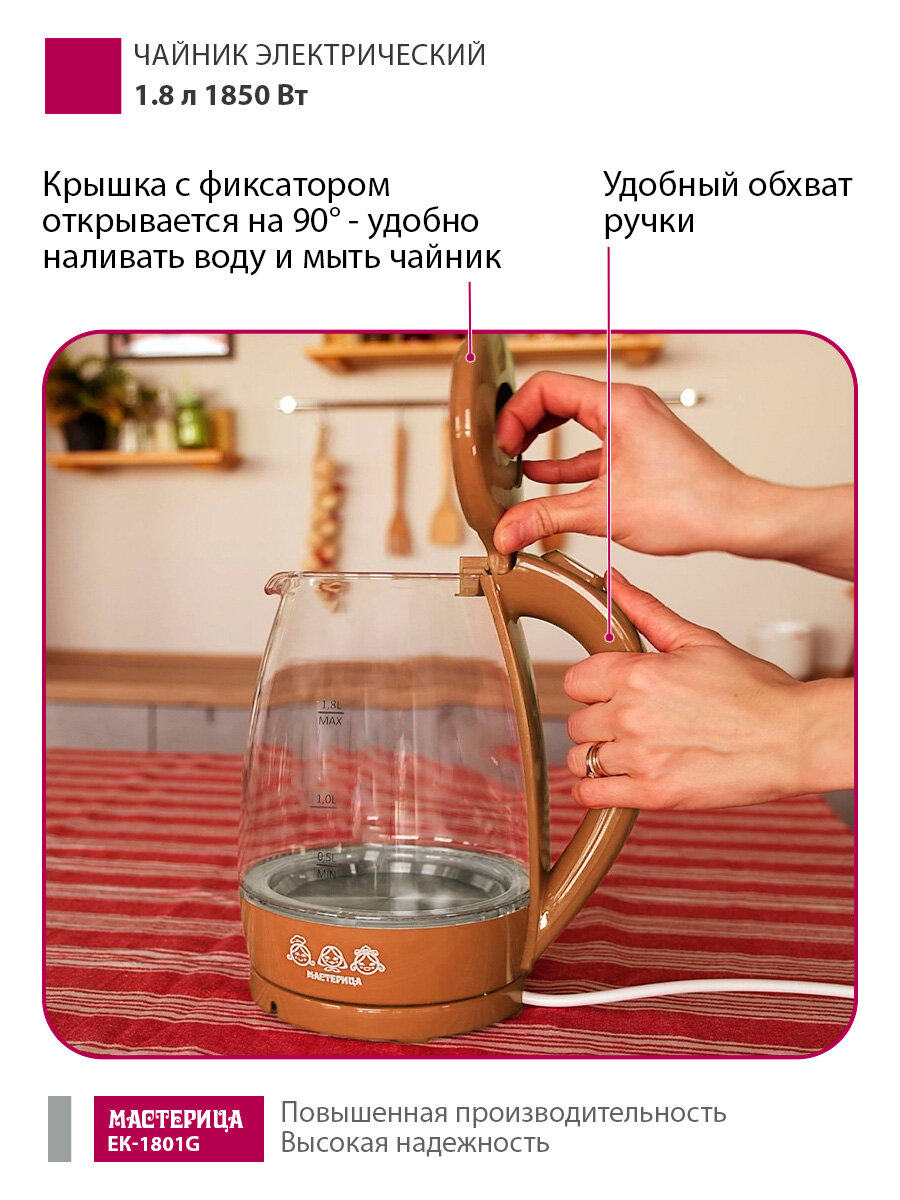 | Безопасность | блокировка включения без воды, блокировка крышки, отключение при снятии с подставки |
