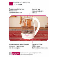 Купить Чайник электрический Мастерица ЕК-1801G, снег, 1,8л, стекло, 1850 Вт с доставкой по всей России.