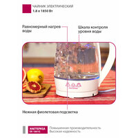 Чайник электрический Мастерица ЕК-1801G, снег, 1,8л, стекло, 1850 Вт