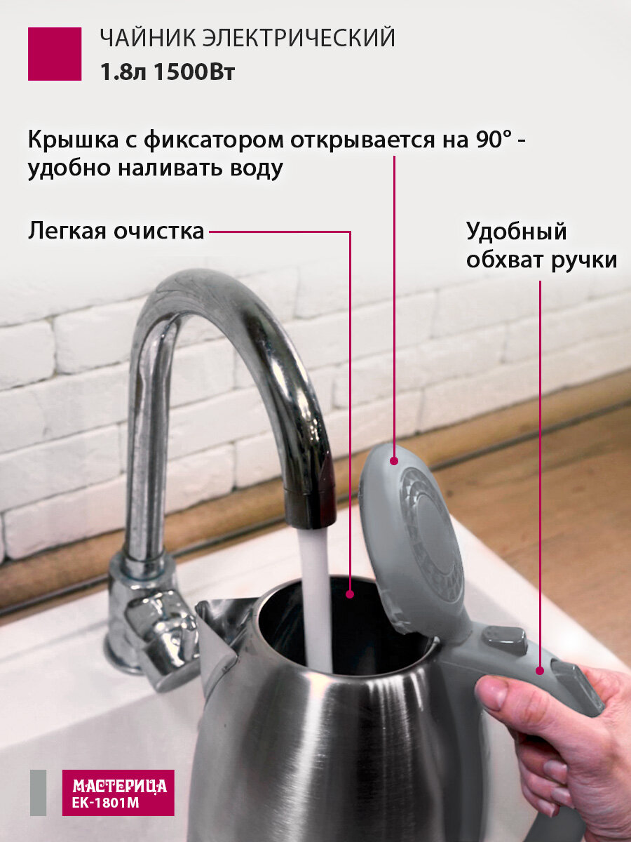 | Безопасность | блокировка включения без воды, блокировка крышки, отключение при снятии с подставки |