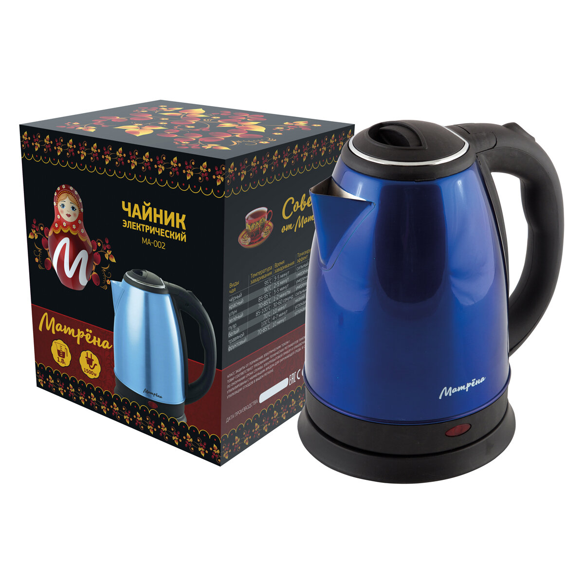 Чайник электрический Матрена MA-002, 1,8 л, 1500 Вт сталь, синий: сравнение цен, характеристики, фото, актуальное наличие и цены.