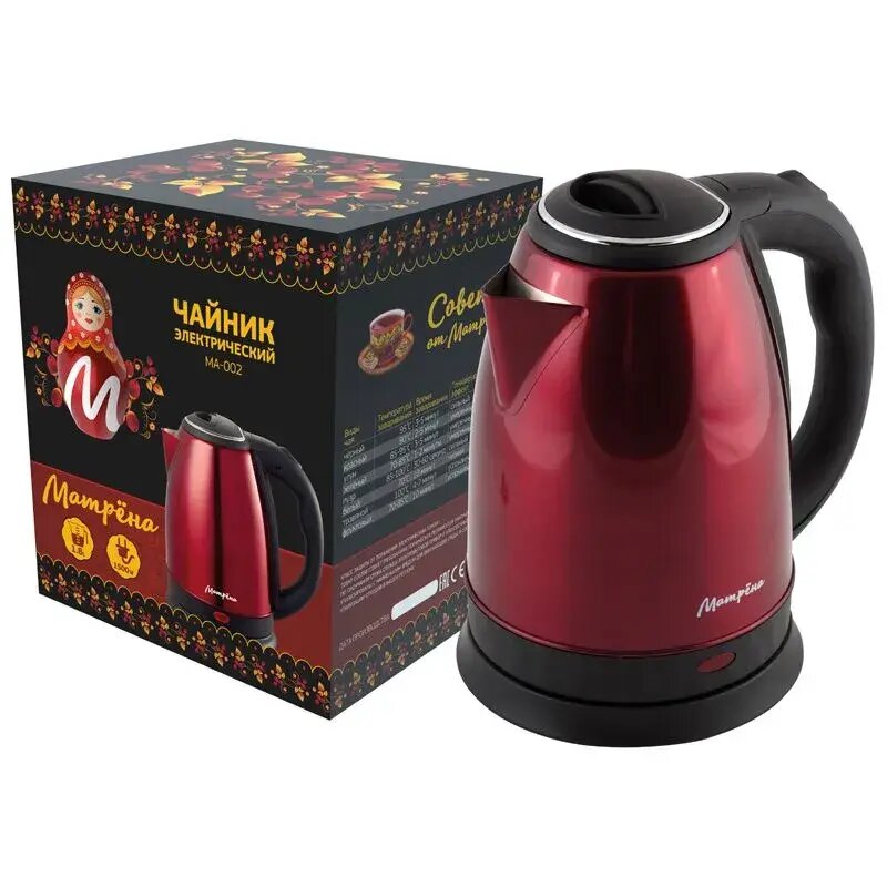 | Дополнительная информация | чайник имеет округлую форму с носиком для наливания и кнопкой для включения, материал чайника - стальной с глянцевой поверхностью |