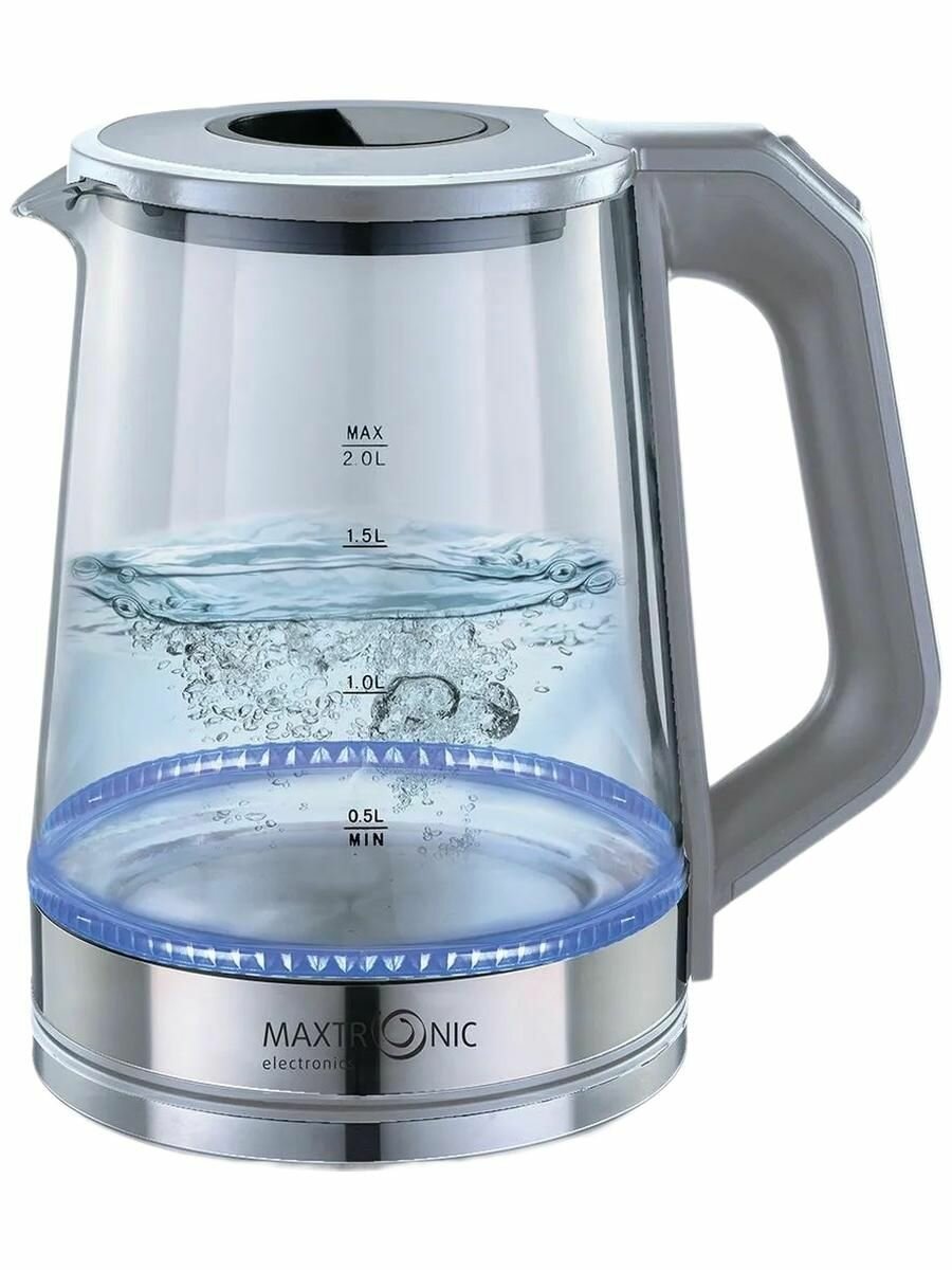 Купить Чайник электрический MAXTRONIC MAX-1780, Объем 2 литра, Вращение подставки на 360, LED подсветка, Автоотключение, Серый с доставкой по всей России.
