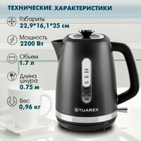 Чайник электрический металлический TUAREX TK-8006, 2200 Вт, защита от перегрева, 1,7 литра: сравнение цен, характеристики, фото, актуальное наличие и цены.