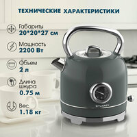| Особенности | вращение на 360 градусов, двойные стенки, дисплей, индикатор уровня воды, индикация включения, отсек для хранения шнура, сенсорное управление, съемная крышка, фильтр |