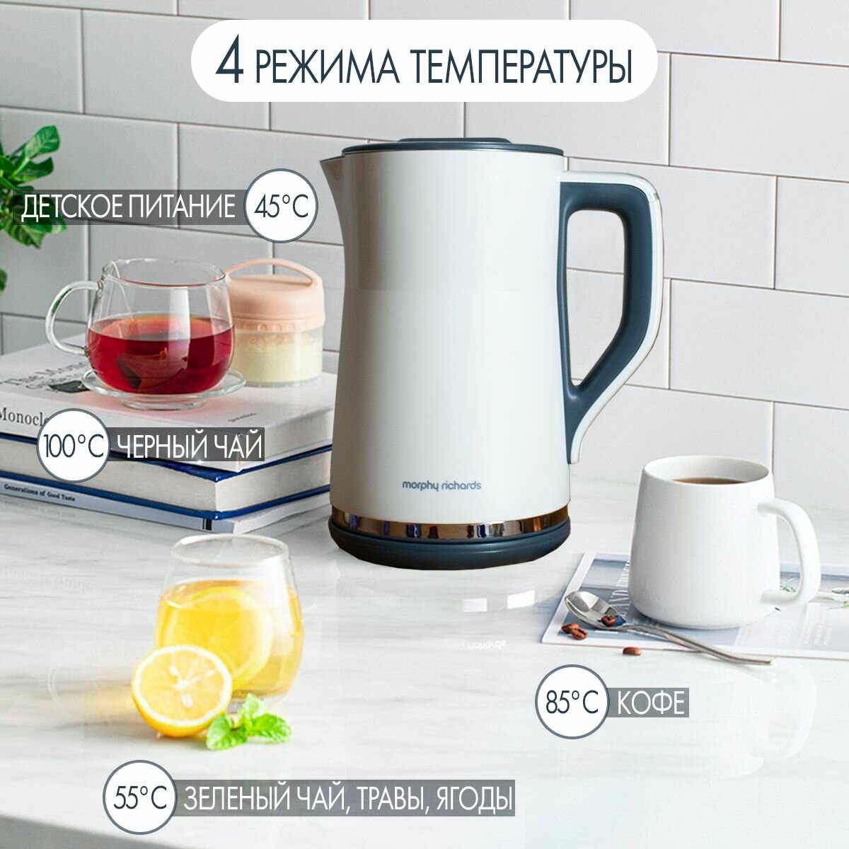 Чайник электрический Morphy Richards с выбором температуры Harmony 1,5 л, белый -lj: сравнение цен, характеристики, фото, актуальное наличие и цены.