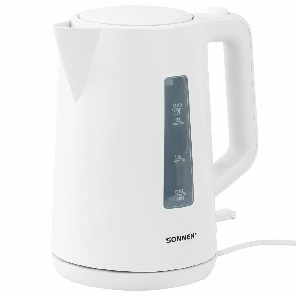 Купить Чайник электрический SONNEN KT-1303, 1,7 л, 2200 Вт, пластик, белый, 456374, 456374 с доставкой по всей России.