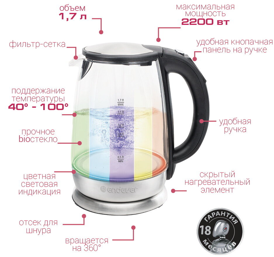Купить Чайник электрический Endever Skyline KR-331G, стальной/черный с доставкой по всей России.
